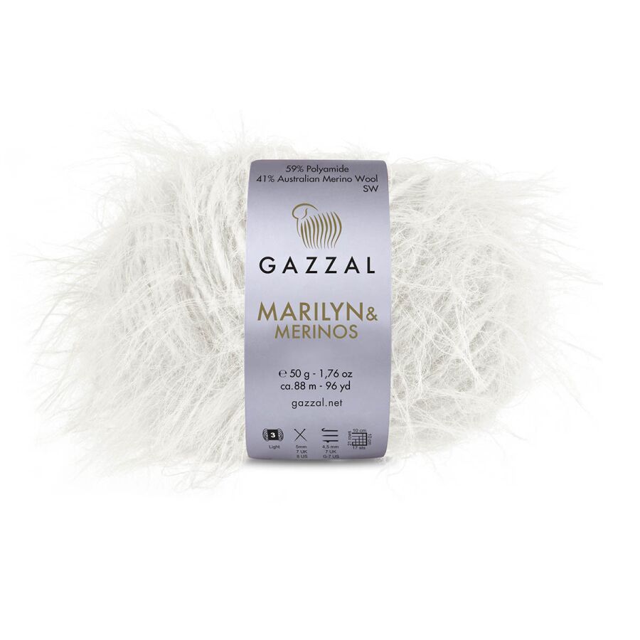 Gazzal Marilyn & Merinos, %41 Avustralya Merino yünü ve %59 polyamid içeriğiyle, hem doğallığı hem de lüks görünümü bir araya getiren özel bir ipliktir.